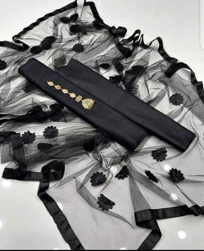 Enjoy the classic look of this 3-Piece Black Katan Silk Unstitched Suit, designed for those who value simple, high-quality style.